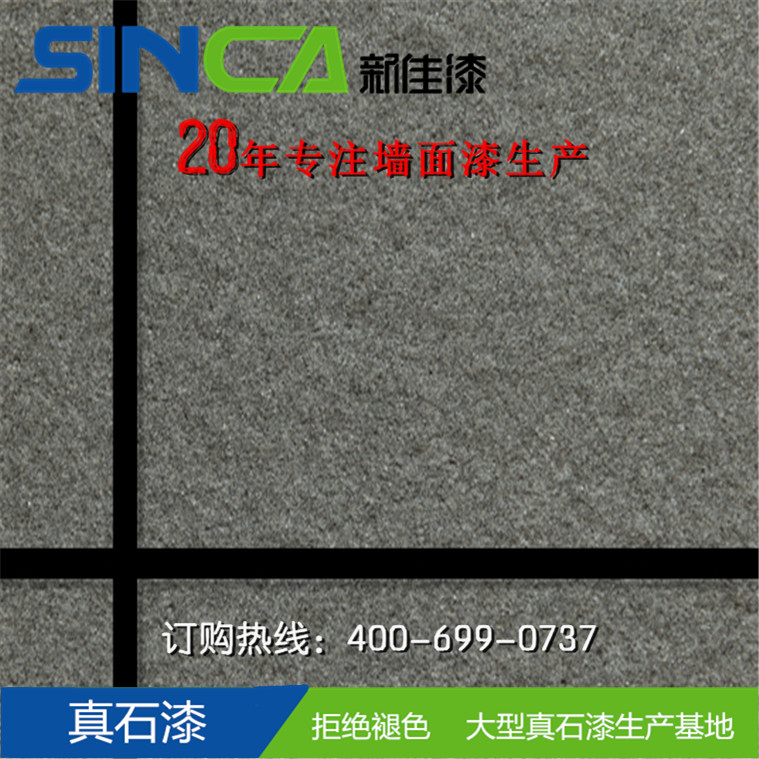 新佳外牆真石漆特點:採用特種無皂乳液配以天然彩砂及助劑等精緻而成。具有天然石材外觀,色澤持久。耐水性好,耐水白性優異。優越的耐候性,耐堿性和高的附著力。色彩搭配豐富 ,裝飾效果好。是替代大理石的優良産品。